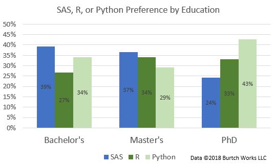 To keep things simple, we only ask one question: Which do you prefer to use – SAS, R, or Python?
