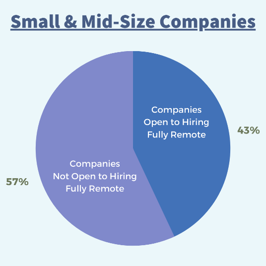 Of the small and mid-size companies, (43%) are open to hiring individuals to work fully remotely, and (57%) are seeking those that have the flexibility to come into the office.