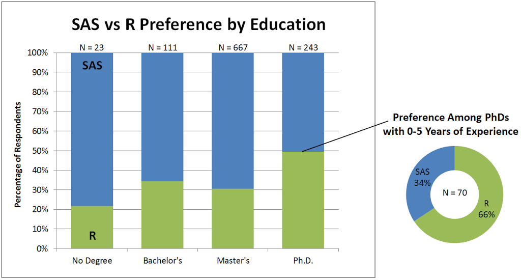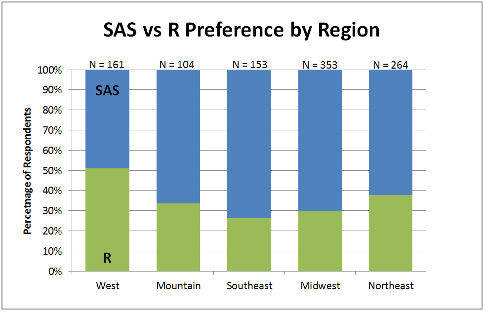 In most regions of the United States SAS was the preferred tool, however on the West Coast R is favored over SAS.